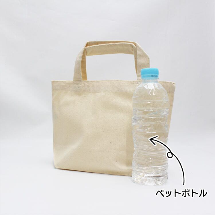 マチありミニトート。お弁当箱とペットボトルが入るサイズなので、ランチバッグとして最適です。財布とスマホを入れて近所へのお出かけに、ペットのオリジナルバッグやお散歩バッグにも。