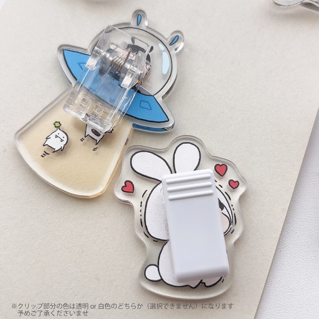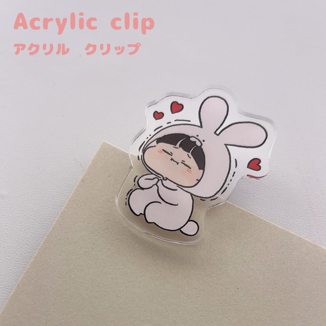 着ぐるみうさぎ アクリルクリップ(1個)になります クリップ全体サイズ 34㎜×42mm(暑さ約14.5mm) クリップ部分の色は透明or白ベースどちらか(選択できません)になります