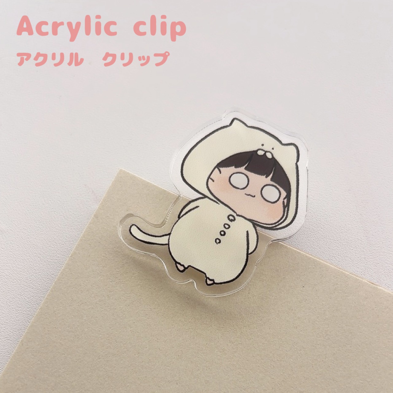 きぐるみねこ*アクリル*クリップ* クリップ全体サイズ 約42㎜×33mm(厚さ約14.5mm) クリップ部分の色は透明or白ベースどちらか(選択できません)になります