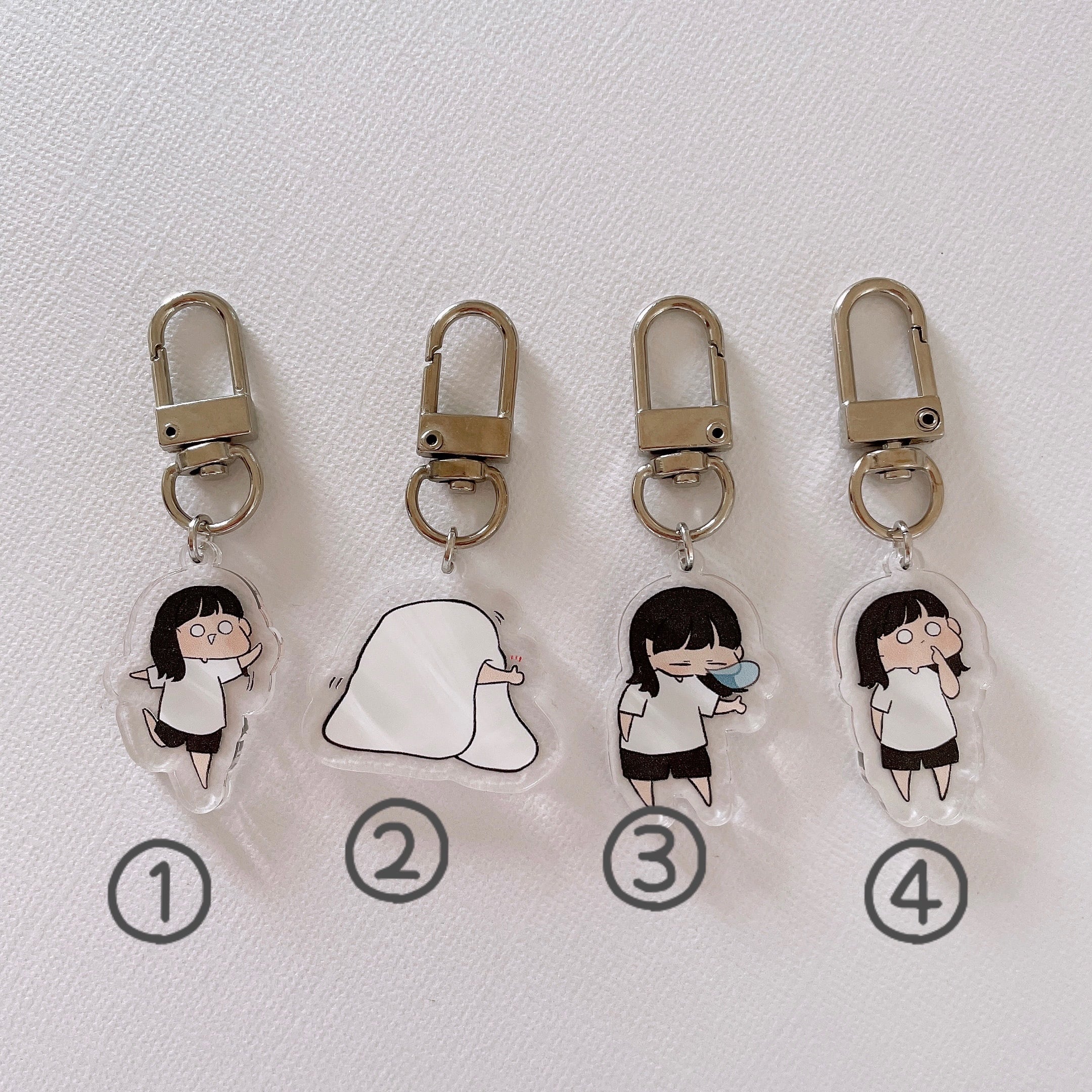 アクリルキーホルダー ①約66㎜×23㎜ ②約61㎜×32㎜ ③約66㎜×21㎜ ④約67㎜×19㎜