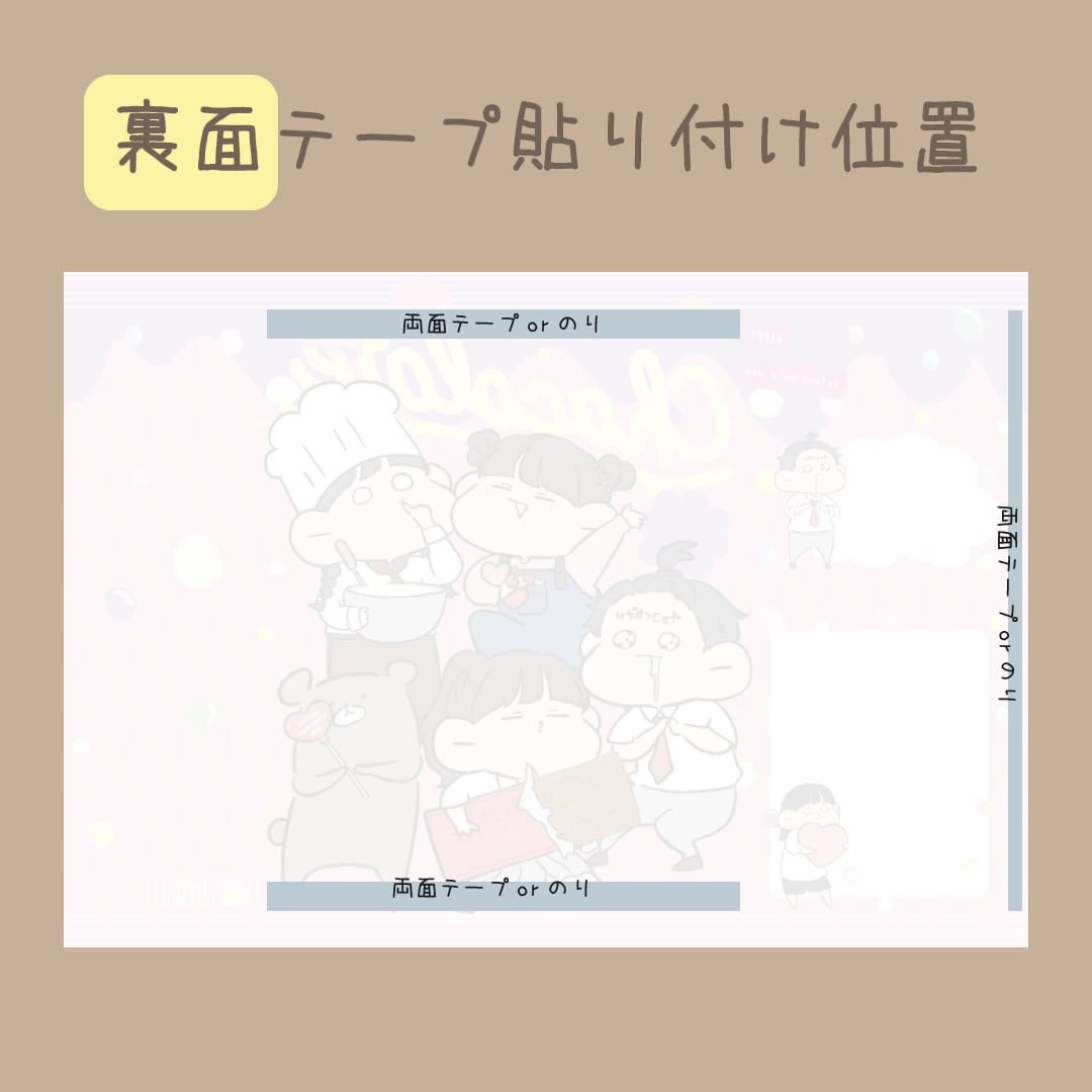 裏面の上下、右端をのりや両面テープでとめるだけ